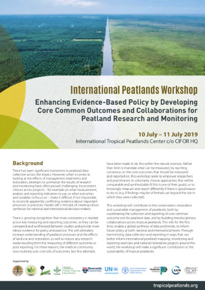 - Establish collaborative relationships between workshop participants, as a basis for future interdisciplinary and inter-regional tropical peatlands research.