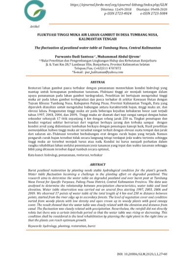 2020 Fluktuasi Tinggi Muka Air Lahan Gambut di Desa Tumbang Nusa, Kalimantan Tengah Authors: Santosa, P.B.; Qirom, M.A.;