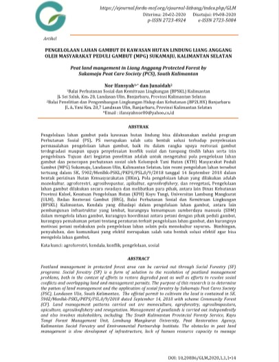 2020 Pengelolaan Lahan Gambut di Kawasan Hutan Lindung Liang Anggang oleh Masyarakat Peduli Gambut (MPG) Sukamaju, Kalimantan Selatan Authors: Ifansyah, N.; Junaidah;